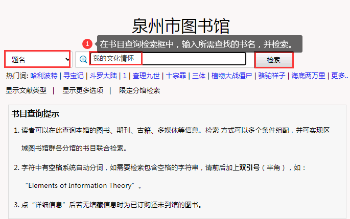 或者通过泉州市图书馆官网首页的“馆藏书刊查询”模块查找图书(如图3)。