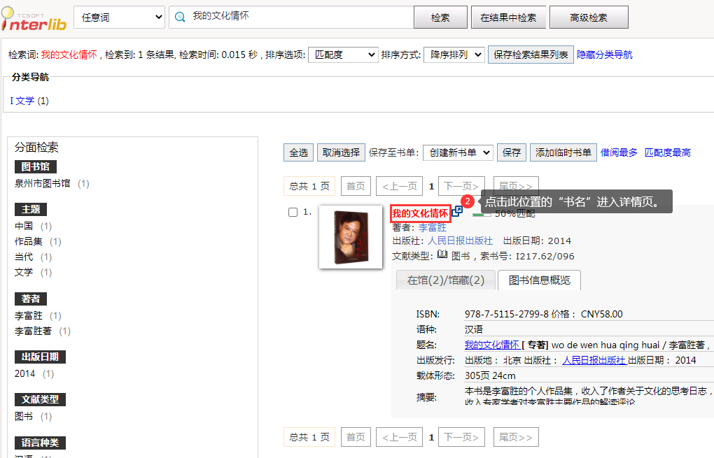 3.通过泉州市图书馆书目查询系统(OPAC)访问